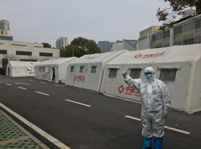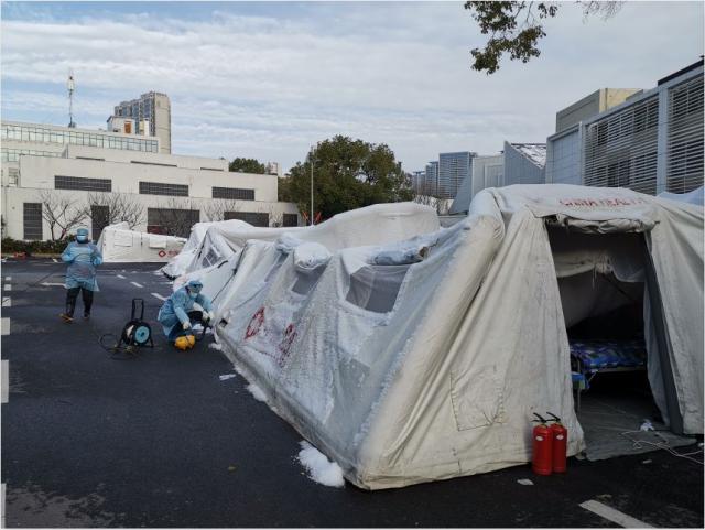 À´×ÔÖйúº½Ìì¿Æ¹¤µÄ¡°Òƶ¯Ò½Ôº¡±×°±¸°ü¹Ü¶ÓÔ±ºÍÉϺ£¸´µ©´óѧÁ¥ÊôÎ÷ÔÀÒ½ÔºÒ½»¤ÈËÔ±ÔÚÎä²ý·½²ÕҽԺǰºÏÓ°¡£