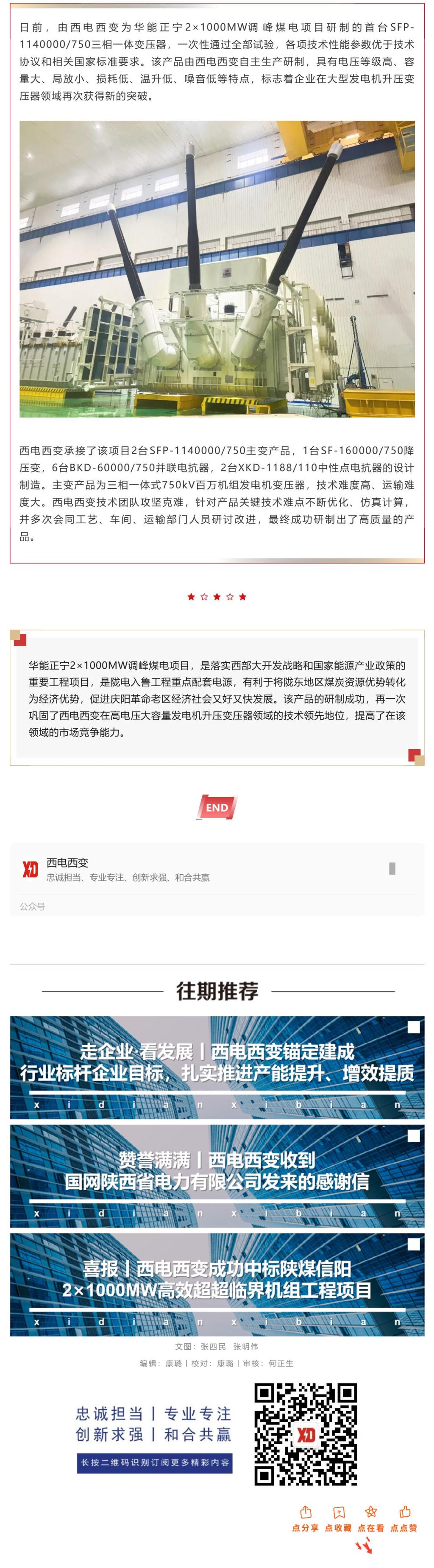 喜报丨3118云顶集团西变研制的首台SFP-1140000_750华能正宁三相一体变压器一次性通过全部试验